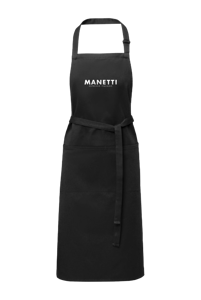 Gemaakt van duurzaam materiaal biedt deze sloof niet alleen een stijlvolle uitstraling, maar ook functionaliteit die is afgestemd op de veeleisende omgeving van een koffiebar. Het zwarte ontwerp straalt elegantie uit en op de borst prijkt subtiel het Manetti logo.